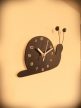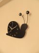Sziluettes házicsiga ábrázolású falióra. Szép dísze lehet a gyerekszobának. A csiga csápjai drótból vannak, szemei festett poliuretán gömbből.
