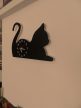 Macskás sziluettes falióra. Fekete macska a falon, akár az ön gyermekének szobafalán is! Szép dísze lehet a gyerekszobának. A macska egy szerethető kis állat, szerettesse meg gyerekével is!